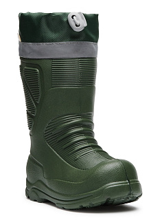 Верхняя часть сапожек выполнена из водоотталкивающей ткани Оксфорд. Манжета затягивается фиксатором, что препятствует попаданию воды и грязи внутрь. Наличие светоотражающей ленты обеспечивает детскую безопасность в темное время суток. Нижняя часть сапога сделана из материалов ЭВА - DU-Rable. Для большего тепла и комфорта модель производится с утеплителем, который легко снимается, стирается и сушится.