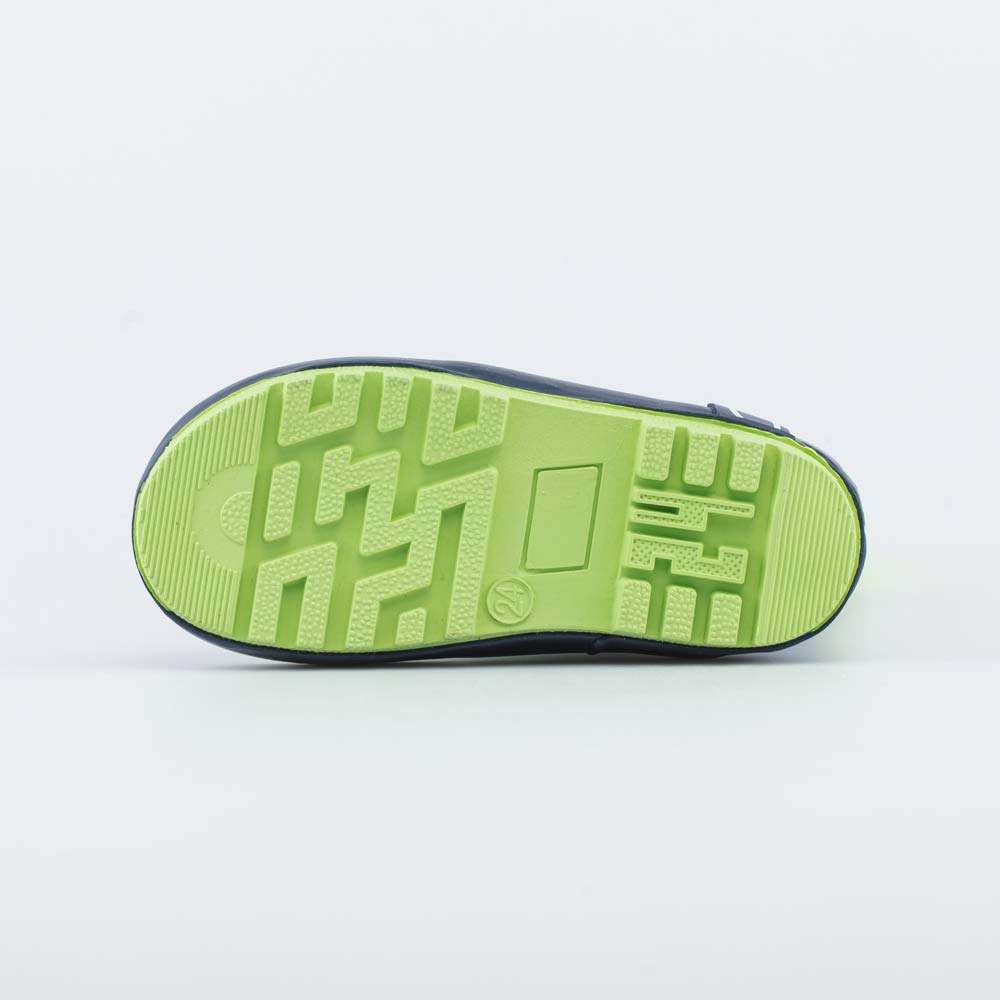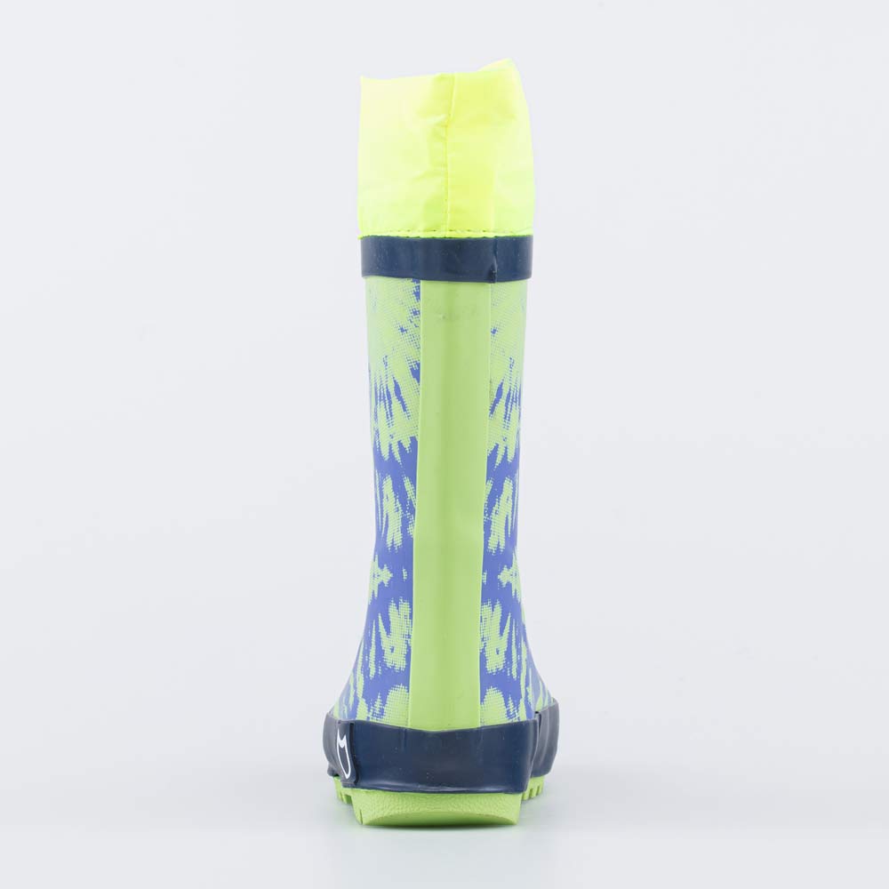 Детские резиновые сапожки. Материал верха и подошвы - водонепроницаемая резина. Подкладка и стелька - из текстиля с содержанием хлопка 80% позволяют коже \'дышать\'. Манжет дополнен утяжкой с фиксатором, что позволяет сохранять ножки ребенка сухими даже во время активных игр на свежем воздухе. Сапожки украшены ярким принтом в цвет манжета. Модель имеет анатомически правильную форму следа.