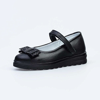 Кожаные туфли для девочки классического черного цвета Верх, подкладка и стелька выполнены из натуральной кожи - износостойкого, гипоаллергенного и дышащего материала. Липучки-велькро позволяют быстро обуваться и разуваться. Подошва выполнена из ПУ (полиуретана) - амортизирующая, гибкая и легкая. Благодаря лаконичному дизайну, туфельки отлично подходят для повседневной носки в школу. Модель анатомически правильная: имеет небольшой каблучок/танкетку, подсводник (супинатор), в меру жёсткий задник и круглый носок. Такая научно-обоснованная конструкция положительно влияет на правильное развитие стоп и всего опорно-двигательного аппарата. Сделано в России.