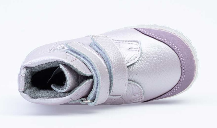 Удобные ботинки из натуральной кожи дополнены аппликацией на берце в виде ракушки с жемчугом. Утепленная подкладка-байка с содержанием шерсти более 80% сохраняет тепло. Два ремня с липучкой позволяют не только быстро обувать и снимать обувь, но и обеспечивают плотное прилегание обуви к стопе. Мягкий кожаный манжет создает комфорт при ходьбе и предотвращает натирание ножки ребенка. Дополнительную защиту от осенней прохлады придаёт войлочная стелька, которую можно вытащить для просушки, воспользовавшись специальной петлёй. В носочной части есть дополнительная кожаная накладка с полиуретановым покрытием для увеличения износостойкости.Подошва клеевая, с небольшим каблучком, выполнена из прозрачного термоэластопласта с блёстками – легкого, прочного материала, обладающего отличным амортизирующим и теплосберегающим эффектом. Эта модель сочетает яркую, но благородную расцветку со стильным дизайном и удобством.