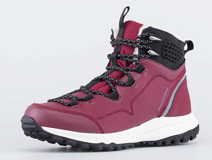 Ботинки для девочки выполнены из комбинированных материалов. -Все ответственные детали верха: носочная часть, элементы крепления и часть задника из высококачественной искусственной кожи комбинированы менее ответственными деталями из текстильных материалов. -Материал подкладки - шерстяной мех из натуральной овечьей шерсти отлично сохраняет тепло, отводит влагу от ноги, оказывает массажное действие. -На ноге модель фиксируется с помощью молнии, при этом «полноту» можно отрегулировать с помощью шнурков. -Пяточная и носочная части имеют дополнительную накладку из кожи для увеличения износостойкости. -Для безопасности прогулок в темное время суток ботинок оснащен световозвращающими элементами. -Подошва модели - легкая, прочная, с отличной амортизацией и хорошей теплоизоляцией.