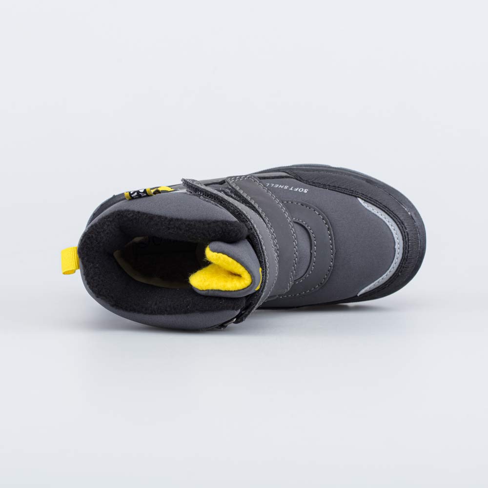 Мембранные ботинки для мальчика с SoftShell серого цвета Верхний слой из материала SoftShell - защита от дождя и ветра. Средний слой - мембрана. Благодаря микроскопическим порам, она дышит, но не пропускает внутрь влагу. Подкладка - мех, на 30% состоящий из натуральной овечьей шерсти. Он согревает и оказывает массажный эффект. На носочной и пяточной части - защитные накладки, которые продлевают срок службы обуви. Липучки-велькро позволяют отрегулировать обувь по подъему, а также быстро обуваться и разуваться. Подошва из ТПР (термопластичной резины) - гибкая, амортизирующая и устойчивая на скользких поверхностях. Модель анатомически правильная: имеет небольшой каблучок/танкетку, в меру жёсткий задник и круглый носок. Стелька из натуральной шерсти приформовывается к своду стопы, таким образом создавая индивидуальную анатомическую форму внутреннего пространства в обуви, подходящую только вашему ребенку. Это положительно влияет на правильное развитие стоп и всего опорно-двигательного аппарата.