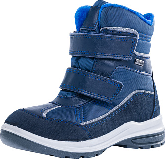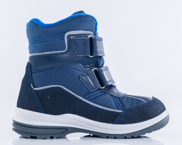 Модель выполнена в классическом синем цвете. Материал верха - водоотталкивающая ткань, дублированная мембранным материалом. Контрастная расцветка, усиление носочной и пяточной частей – все, для большего удобства и красоты. Легкая и гибкая литьевая подошва создает повышенную комфортность. Подкладка - утеплённая, из шерстяного меха. На ноге модель фиксируется с помощью 2-ух липучек, что придаёт ей максимальную раскрываемость и идеально подходит для ножек с высоким подъёмом.Язычок ботинка вшит по бокам практически до самого верха, тем самым предотвращая попадание снега и воды внутрь.Лаконичный дизайн и расцветка подойдет практически к любому гардеробу.