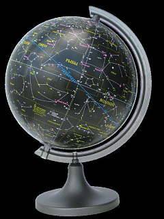 На глобусе отображены крупные звезды и созвездия с названиями на русском языке