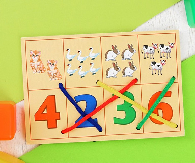 Игрушка бизиборд ЕАС Шнуровка развивающая "Учим цифры" (/Дерево, текстиль/универсальная)