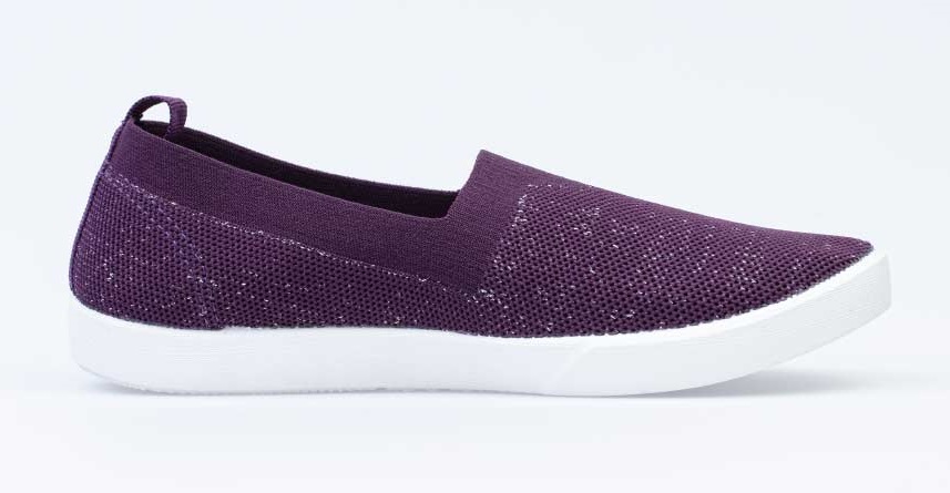 Слипоны из вязанного текстиля. Литьевой метод крепления подошвы обеспечивает ей максимальную прочность, необходимую гибкость и минимальный вес. Подошва имеет анатомическую форму следа и в точности повторяет изгибы свода стопы, что позволяет ноге чувствовать себя комфортно весь день.