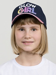 Кепка для девочек. На верхней части козырька покрытие глиттером. Вышивка многоцветной нитью с эффектом градиента. Перевод Сияющая девушка.