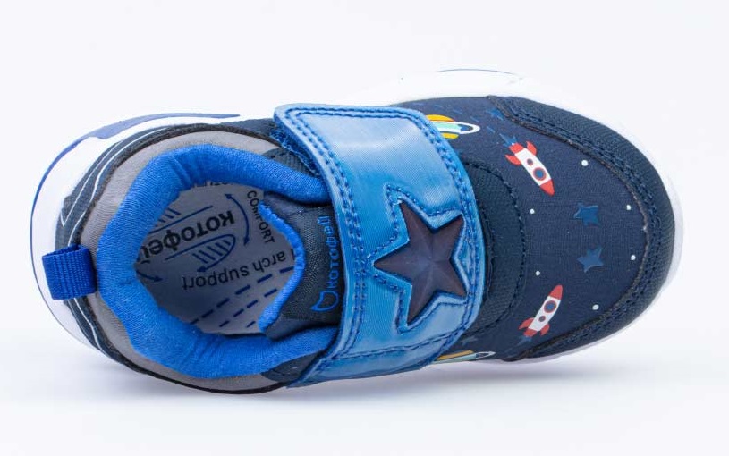 Кроссовки от Котофей выполнены из высококачественных материалов дышащие, легкие, удобные. Все ответственные детали верха: носочная часть, элементы крепления и часть задника из искуственной кожи комбинированы менее ответственными деталями из текстильных материалов. Текстиль для верха имеет сетчатую структуру. Материал подошвы - необыкновенно легкая ЭВА, которая позволяет добиться необходимой легкости, мягкости и эластичности. Метод крепления подошвы - клеевой. Кроссовки оснащены мигающими лампочками с яркими светодиодами. Лампочки включаются датчиком, реагирующим на ударные нагрузки, возникающие при ходьбе. Подкладка из текстиля обеспечивает ногам комфорт и уют. Кожаная формованная стелька обладает гигроскопичными свойствами. Модель фиксируется на ноге при помощи двух ремней с велькро.