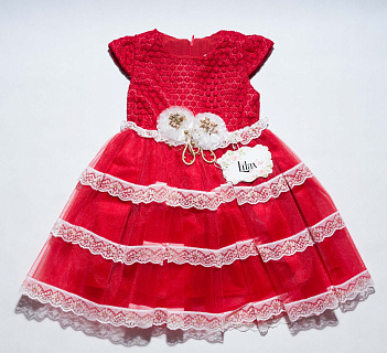 Нарядное платье для девочки красного цвета.