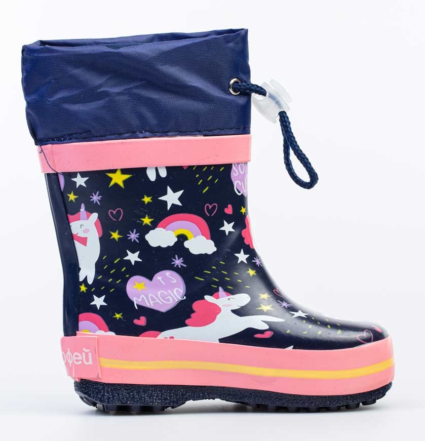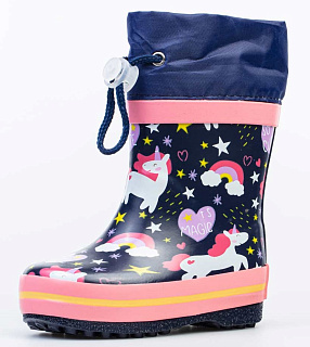 Резиновые сапожки для девочек с модным принтом в виде единорогов подходят как для летней ненастной погоды, так и для демисезона. - Текстильная подкладка позволяет коже дышать. - Сапог имеет удобную колодку с прочной устойчивой подошвой. - Манжет надёжно затягивается на голенище с помощью резинки с фиксатором, что предотвращает попадание влаги через верх сапога внутрь.