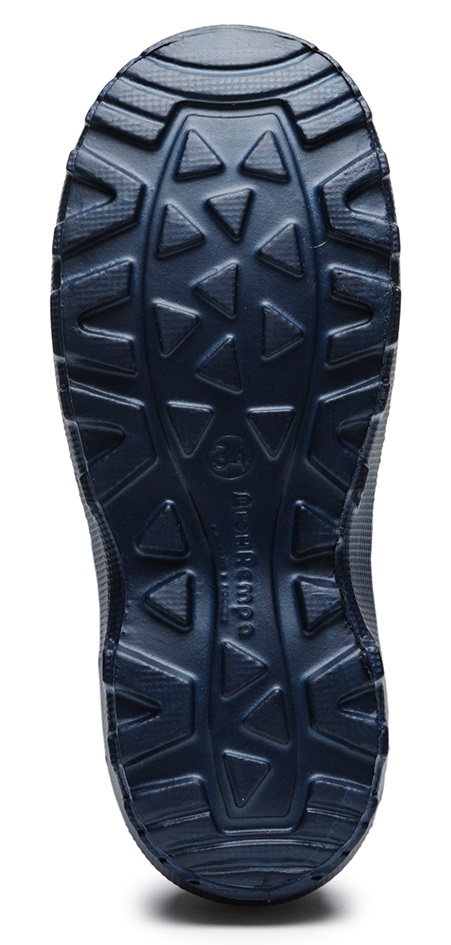 Верх модели - надставка с водоотталкивающей пропиткой и фиксатором, который обезопасит ребенка от попадания снега, грязи и влаги. Низ модели - сапог из материала ЭВА - Du-Rable. Материал, который обладает повышенной прочностью, умением сохранять эластичность при низких температурах. Нескользящая подошва.