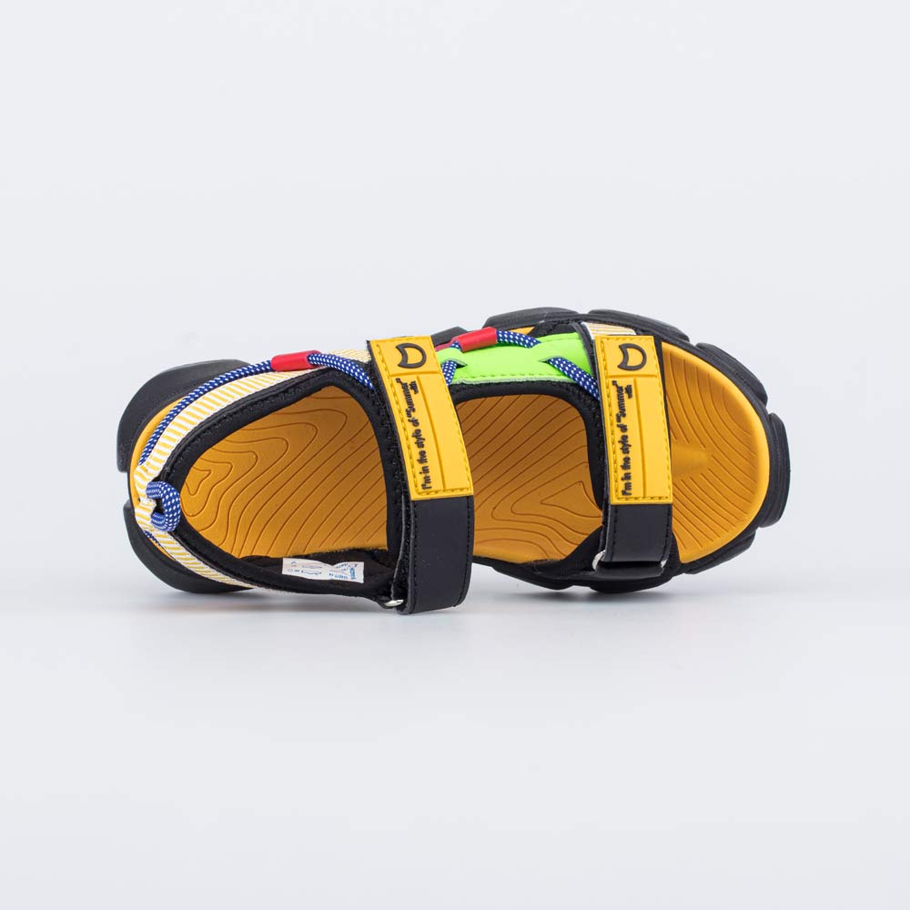 Яркие и лёгкие пляжные сандалии для мальчика Верх обуви выполнен из комбинации текстиля и искусственной кожи. Подкладка текстильная, чтобы ножкам было комфортно. Стелька из водонепроницаемого материала имеет небольшой рельеф, что создает массажный эффект. Модель максимально открытая - подойдет для жаркой погоды. Липучки-велькро позволяют отрегулировать обувь по подъему, а также быстро обуваться и разуваться. Подошва изготовлена из ЭВА (этиленвинилацетата) - очень лёгкая, эластичная и амортизирующая. Модель интересна своим современным дизайном. Массивная рельефная подошва привлекает к себе внимание. Модель анатомически правильная: имеет приподнятость задней части по отношению к носочной, стелька повторяет форму стопы. Это положительно влияет на правильное развитие стоп и всего опорно-двигательного аппарата.