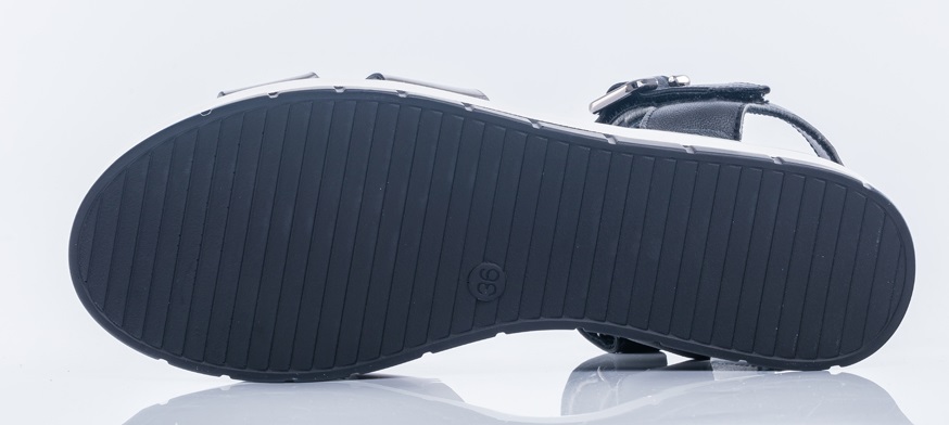 Модные босоножки - отличный выбор для юной модницы! Стелька из мягкой нежной натуральной кожи добавит комфорта ножкам! Ремень с застежкой надежно фиксирует модель на ноге. Подошва очень устойчивая, современная, практичная и удобная. Сочетание тренд \'БЛЕСК\' и черного цветов подойдет к любому летнему гардеробу модницы. Стильные босоножки станут прекрасным завершением образа.