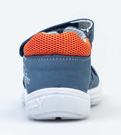 Туфли для мальчика изготовлены из натуральной кожи. -Закрытая пятка надежно фиксирует стопу. -Стелька из натуральной кожи имеет небольшой подсводник. - Застежка- два ремня с \'велькро\' позволяют легко обувать и снимать обувь, а также регулировать посадку сандалий на ступне. - Мягкий манжет создает комфорт при ходьбе и предотвращает натирание ножки ребенка. -Подошва из полиуретана— легкая и гибкая. Модель декорирована принтом.