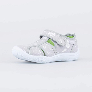 Текстильные туфли для мальчика на хлопковой подкладке Верх изделия полностью выполнен из текстиля. Подкладка и стелька с содержанием хлопка не менее 50% приятные на ощупь и позволяют ножке \'дышать\'. Верх обуви открытый. В ней комфортно не только на улице, но и в помещениях. Липучки-велькро дают возможность быстро обуваться и разуваться. Подошва выполнена из ПВХ (поливинилхлорида) - гибкого, амортизирующего и износостойкого материала. Обувь декорирована принтом. Не содержит элементов, которые ребенок может оторвать и проглотить. Модель анатомически правильная: имеет небольшую приподнятость задней части по отношению к носочной, подсводник (супинатор), в меру жёсткий задник и круглый носок. Это положительно влияет на правильное развитие стоп и всего опорно-двигательного аппарата.