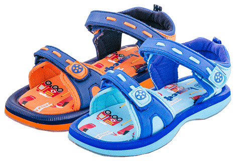 Яркие разноцветные сандали для лета для мальчика. Застежка-липучка позволяет надежно зафиксировать ботинки на ноге ребенка.