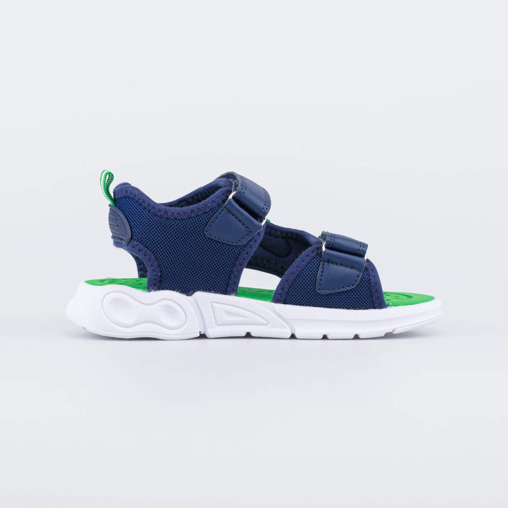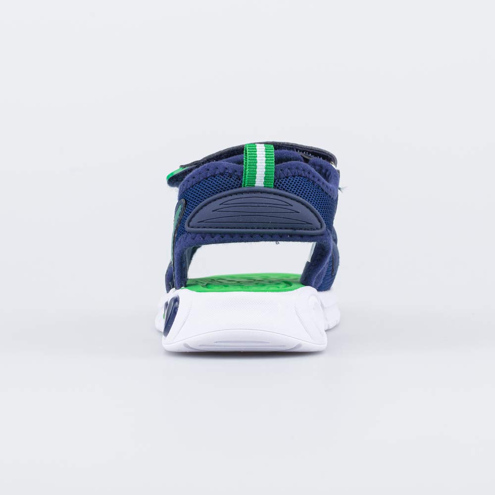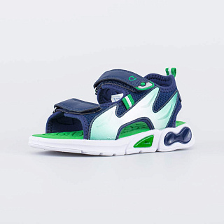Яркие и лёгкие пляжные сандалии для мальчика Верх обуви выполнен из комбинации текстиля и искусственной кожи. Подкладка текстильная, чтобы ножкам было комфортно. Липучки-велькро позволяют отрегулировать обувь по подъему, а также быстро обуваться и разуваться. Модель максимально открытая - подойдет для жаркой погоды и быстро высохнет при намокании. Подошва изготовлена из ЭВА (этиленвинилацетата) - очень лёгкая, эластичная и амортизирующая. Модель интересна своим современным дизайном. Массивная рельефная подошва оснащена светодиодами, мигающими при ходьбе. Модель анатомически правильная: имеет приподнятость задней части по отношению к носочной, стелька повторяет форму стопы и имеет небольшой рельеф, что создает массажный эффект. Это положительно влияет на правильное развитие стоп и всего опорно-двигательного аппарата.