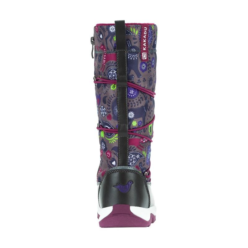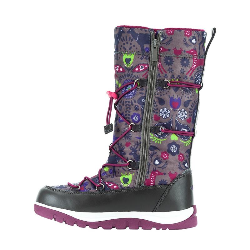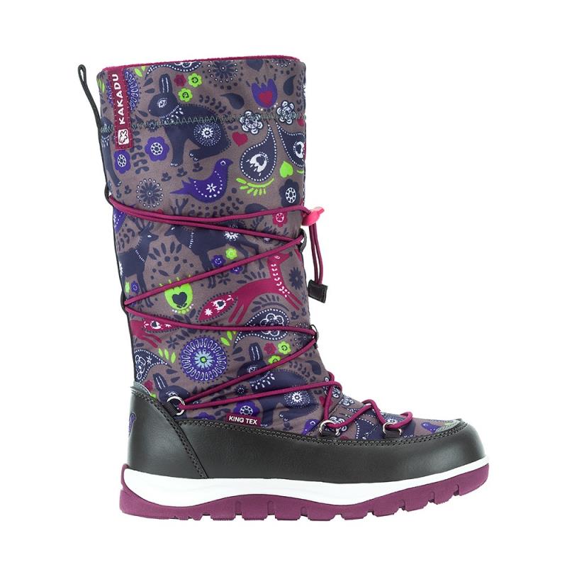 Мембранная обувь для девочек на зиму KAKADU на 30% выполнены из натуральной шерсти и на 70% из синтетического волокна. Этот гипоаллергенный материал хорошо сохраняет тепло и поглощает лишнюю влагу. Двухслойная подошва из термопластичной резины защищает ноги от холода и влаги, а также снимает излишнюю нагрузку с суставов ног и позвоночника за счёт высоких амортизирующих свойств. С помощью затягивающегося на голенище шнурка обувь можно регулировать по полноте ноги. Съёмные стельки позволяют быстро и качественно просушивать обувь при необходимости