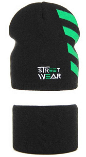 Шапка AGBO черный+зеленый (30% шерсть, 70% акрил) 3145