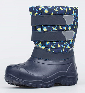 Сапожки для мальчика из группы \'SNOW&RAIN\' изготовлены из комбинации Эвы и текстиля. - Сноубутсы сочетают в себе достоинства резинового сапога и утепленной обуви. - Материал верха - специальный текстиль на основе нейлона, защищающий от ветра, грязи и брызг. - Галоша из лёгкого материала «ЭВА» обеспечивает защиту от влаги. -Теплозащиту придает подкладка из натуральной шерсти. -Обувь фиксируется на ноге при помощи двух велькро. -Во избежание намокания обуви не рекомендуется наступать в лужу выше уровня галоши!