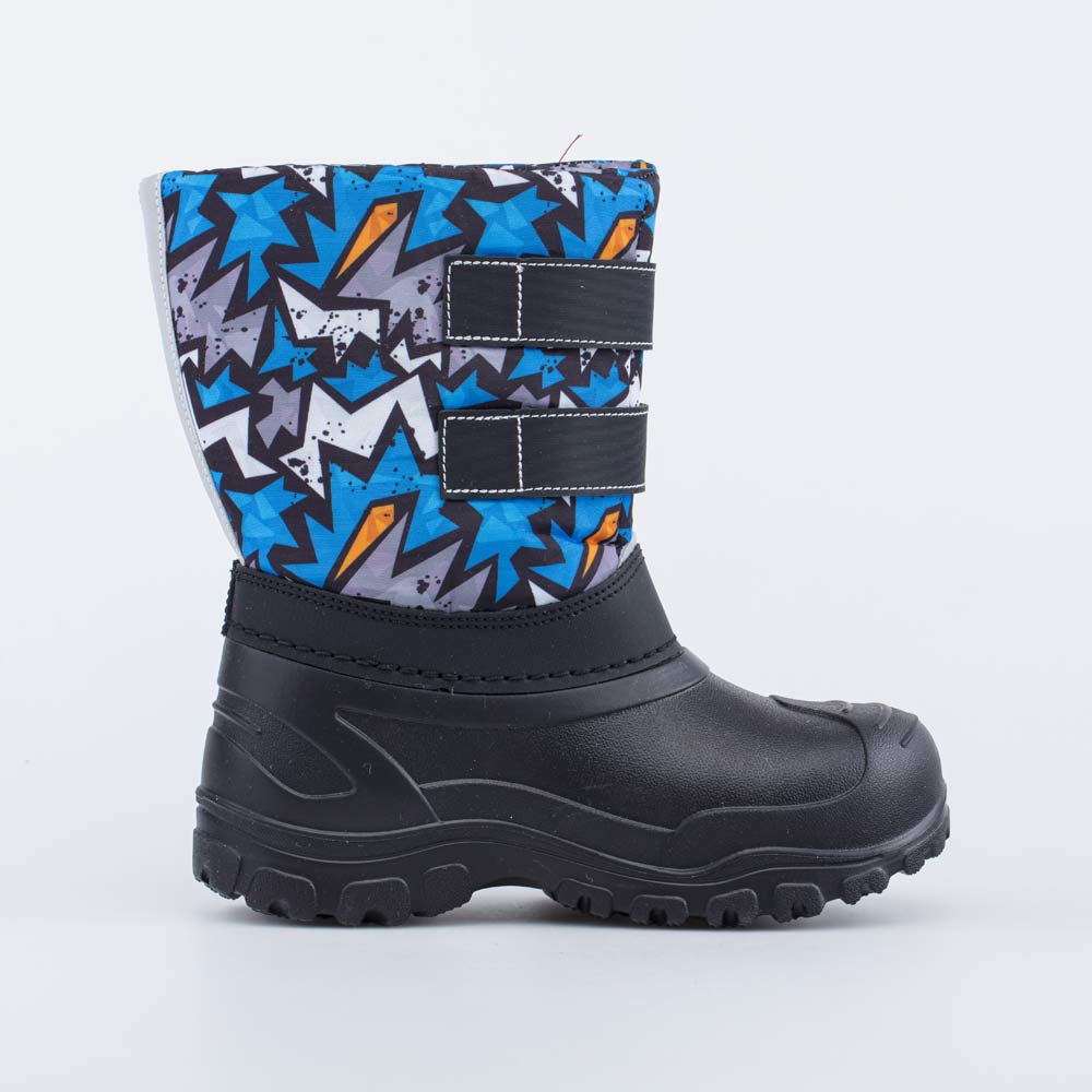 Теплые непромокаемые сапожки Snow&Rain для мальчика черно-синего цвета Материал верха - текстиль на основе гипоаллергенного полиэстера, защищающий от ветра, грязи и брызг. Подкладка и стелька на 80% состоят из натуральной шерсти, поэтому ножкам будет тепло, комфортно и безопасно. Галоша выполнена из ЭВА (этиленвинилацетата) - амортизирующего и легкого материала, который обеспечивает защиту от влаги. Липучки-велькро позволяют быстро обуваться и разуваться. Во избежание намокания обуви не рекомендуется наступать в лужу выше уровня галоши! Модель анатомически правильная: во внутреннем пространстве есть небольшая приподнятость пятки по отношению к носку, которая не заметна внешне, и круглый носок. Такая конструкция положительно влияет на правильное развитие стоп и всего опорно-двигательного аппарата. Сделано в России.