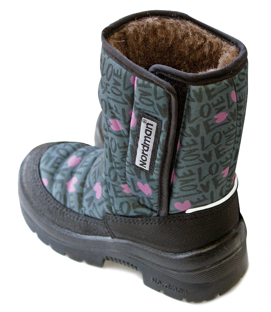 Nordman Lumi В этих сапогах можете отправлять малыша не то, что на прогулку во двор, а на Северный полюс. Внутри шерстяной мех. И даже стелька - из меха.А если внезапно потеплеет и придется пробираться сквозь талые лужи - эти сапоги не подведут. Знаете почему? Ткань обработана водоотталкивающей пропиткой. Но все же мы рекомендуем носить эти дутики исключительно в морозы. Потому что они очень теплые и при околонулевой температуре ножкам ребенка будет жарковато. Обратите внимание на подошву. В ней нет ни капли клея и ни единого шва. Подошваприлита на специальном оборудовании. А это значит, что сапоги прослужат дольше обычного. Ничего не развалится. Ничего не рассохнется.Если вы ищете обувь для ребенка на каждый день для морозов от -10Си ниже,эта модель точно вам подойдет