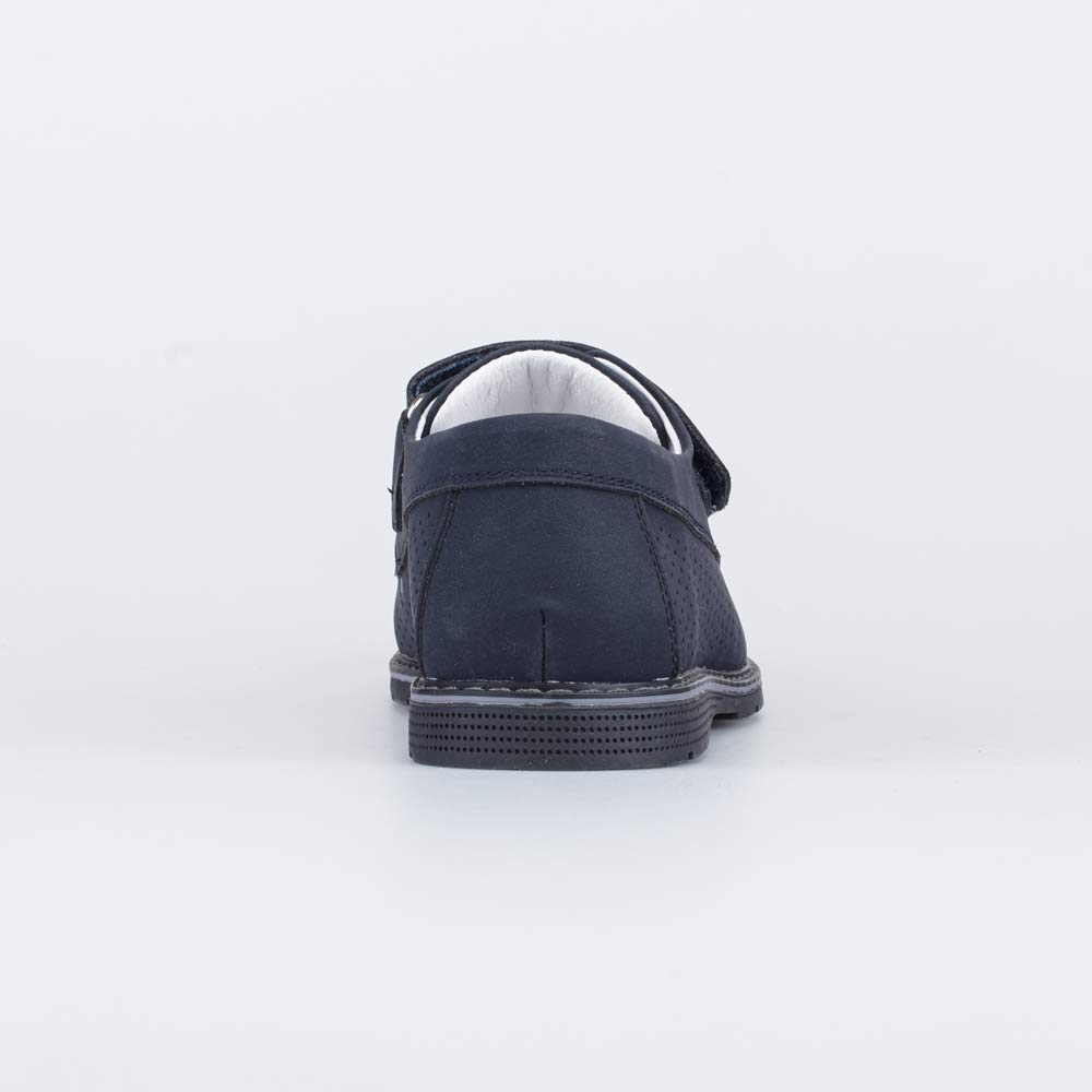 Кожаные туфли для мальчика синего цвета Верх, подкладка и стелька выполнены из натуральной кожи - износостойкого, гипоаллергенного и дышащего материала. Дополнительную вентиляцию обеспечивает перфорация. Липучки-велькро позволяют быстро обуваться и разуваться. Подошва из ТЭП (термоэластопласта) - прочная, гибкая и амортизирующая. Благодаря лаконичному дизайну, модель отлично подходит для повседневной носки в школу. Модель анатомически правильная: имеет небольшой каблучок/танкетку, подсводник (супинатор), в меру жёсткий задник и круглый носок. Такая научно-обоснованная конструкция положительно влияет на правильное развитие стоп и всего опорно-двигательного аппарата.