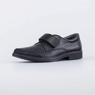 Кожаные туфли для мальчика черного цвета Верх, подкладка и стелька выполнены из натуральной кожи - износостойкого, гипоаллергенного и дышащего материала. Дополнительную вентиляцию обеспечивает перфорация. На носочной части - защитные накладки, которые продлевают срок службы обуви. Мягкий манжет снижает вероятность натирания. Липучки-велькро позволяют быстро обуваться и разуваться. Подошва из ПУ (полиуретана) - гибкая и амортизирующая. Благодаря лаконичному дизайну, модель отлично подходит для повседневной носки в школу. Модель анатомически правильная: имеет небольшой каблучок/танкетку, подсводник (супинатор), в меру жёсткий задник и круглый носок. Такая научно-обоснованная конструкция положительно влияет на правильное развитие стоп и всего опорно-двигательного аппарата. Сделано в России.