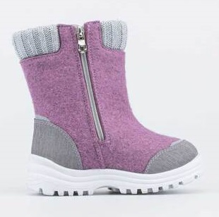 Валенки для девочки выполнены из войлока. -Материал верха войлок - плотный, дышащий и при этом создаёт блогоприятный климат вокруг стопы на улице и в помещении. -Материал подкладки - шерстяной мех из натуральной овечьей шерсти отлично сохраняет тепло, отводит влагу от ноги, придает дополнительный комфорт. -Застежка-молния гарантирует удобное и быстрое одевание обуви. -Мягкий трикотажный манжет создает комфорт при ходьбе. -Носочная и пяточная части защищены кожаными накладками с полиуретановым покрытием, придающим дополнительную износостойкость и защиту от химических реагентов. -Для безопасности прогулок в темное время суток валенки оснащены световозвращающими элементами. - Подошва модели – легкая и амортизирующая, имеет противоскользящую накладку.