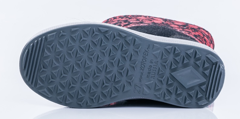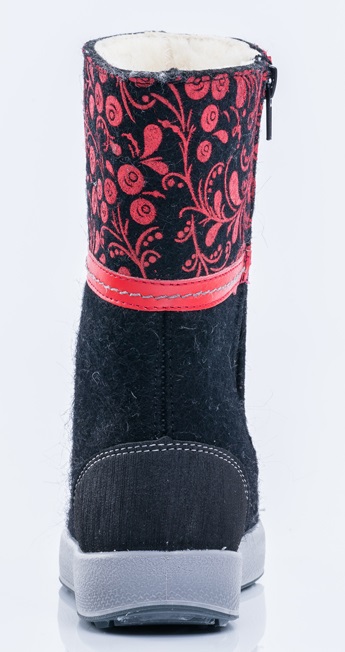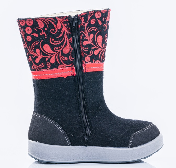 Настоящие русские валенки с яркими, красивыми декоративными элементами. Подкладка из шерстяного меха обладают наивысшими теплозащитными свойствами. Данный вид обуви производится из 100% натуральной овечьей шерсти. Обувь из шерсти «дышит», обладает массажным воздействием, способствует улучшению циркуляции крови. Материал подкладки - шерстяной мех из натуральной овечьей шерсти отлично сохраняет тепло, отводит влагу от ноги, придает дополнительный комфорт. Литьевой метод крепления подошвы обеспечивает ей максимальную прочность, необходимую гибкость и минимальный вес. Подошва имеет анатомическую форму следа и в точности повторяет изгибы свода стопы, что позволяет ноге чувствовать себя комфортно весь день. Застёгиваются эти валенки с помощью классической \'молнии\' с внутренней стороны сапога.