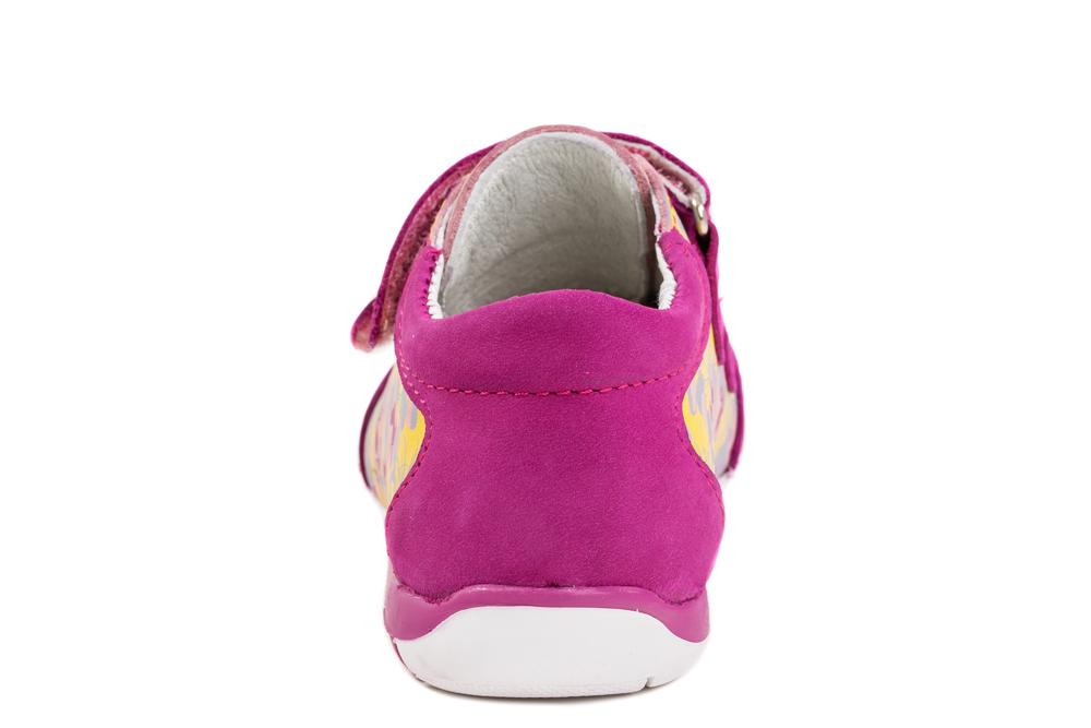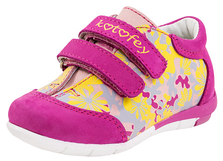 Комфортные ботиночки выполнены в спортивном стиле и гарантируют непоседе комфорт и безопасность. Все ремни регулируются индивидуально по полноте стопы и фиксируются липучкой. Модель выполнена полностью из натуральной кожи. Кожаная подкладка абсорбирует образующуюся внутри обуви влагу и гарантирует полный комфорт. Мягкий манжет создает комфорт при ходьбе и предотвращает натирание ножки ребенка. На верх обуви нанесен красочный принт, что ярко выделяет эту модель.