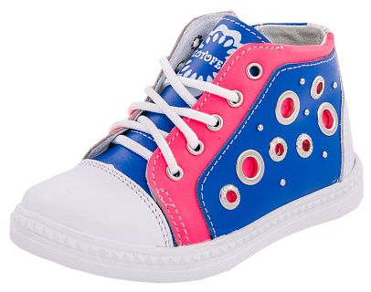 Ботинки для девочки Котофей 352059-21 (синий+красный/натуральная кожа)