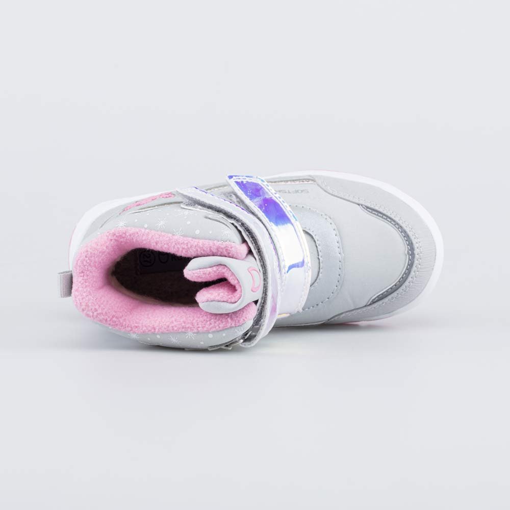 Светлые мембранные ботинки выполнены из высокотехнологичных материалов и подходят для девочки дошкольного возраста.