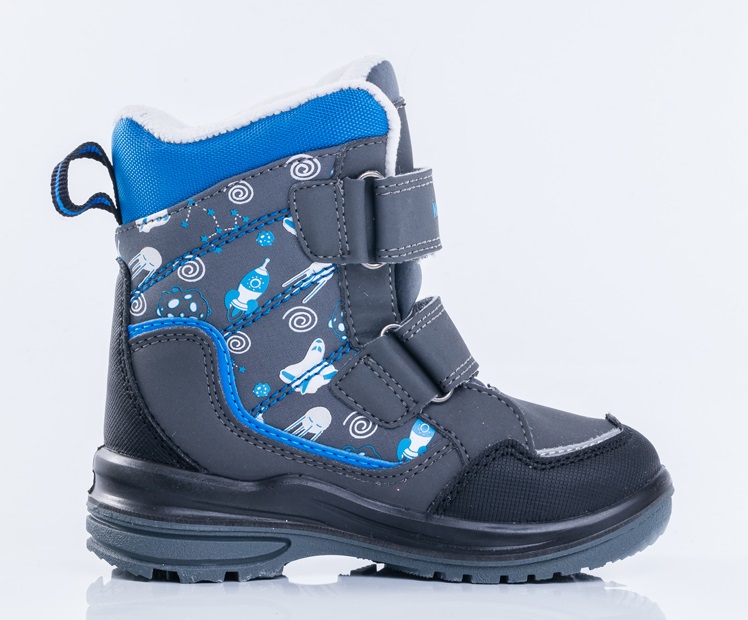 Ботинки из комбинированных материалов верха с использованием мембранной технологии позволят ножкам оставаться сухими в сырую погоду. Модель выполнена в сером цвете с добавлением голубого цвета в отделках и подкладке. Материал верха - водоотталкивающая ткань, дублированная мембранным материалом. Носочная часть, задник и берец усилены дополнительными кожаными деталями, повышающими износостойкость. Легкая и гибкая литьевая подошва создает повышенную комфортность. Подкладка - утеплённая, из шерстяного меха. На ноге модель фиксируется с помощью 2-ух липучек, что придаёт ей максимальную раскрываемость и идеально подходит для ножек с высоким подъёмом.Особенно хороши для активных прогулок.