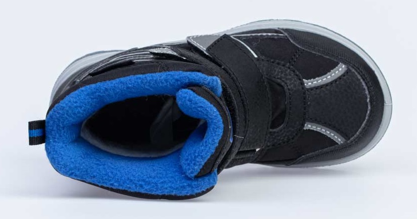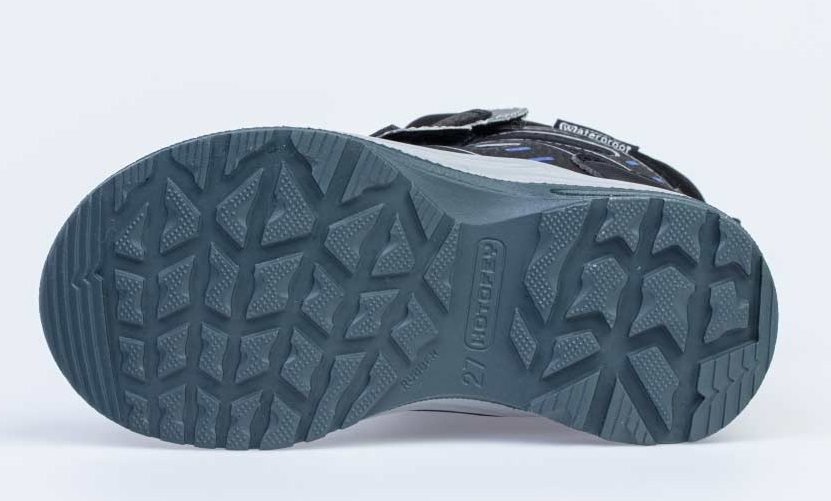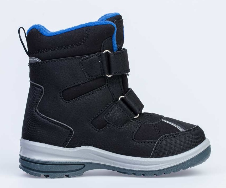 Ботинки из комбинированных материалов верха с использованием мембранной технологии позволят ножкам оставаться сухими в сырую погоду. Контрастная расцветка, усиление носочной и пяточной частей – все, для большего удобства и красоты. Подкладка - утеплённая, из шерстяного меха. Язычок ботинка вшит по бокам практически до самого верха, тем самым предотвращая попадание снега и воды внутрь. На ноге модель фиксируется с помощью 3-ёх липучек, что придаёт ей максимальную раскрываемость и идеально подходит для ножек с высоким подъёмом. Особенно хороши для активных прогулок. Для снижения веса и улучшенных амортизационных свойств подошва изготовлена из комбинации резины и ПУ (пенополиуретан).