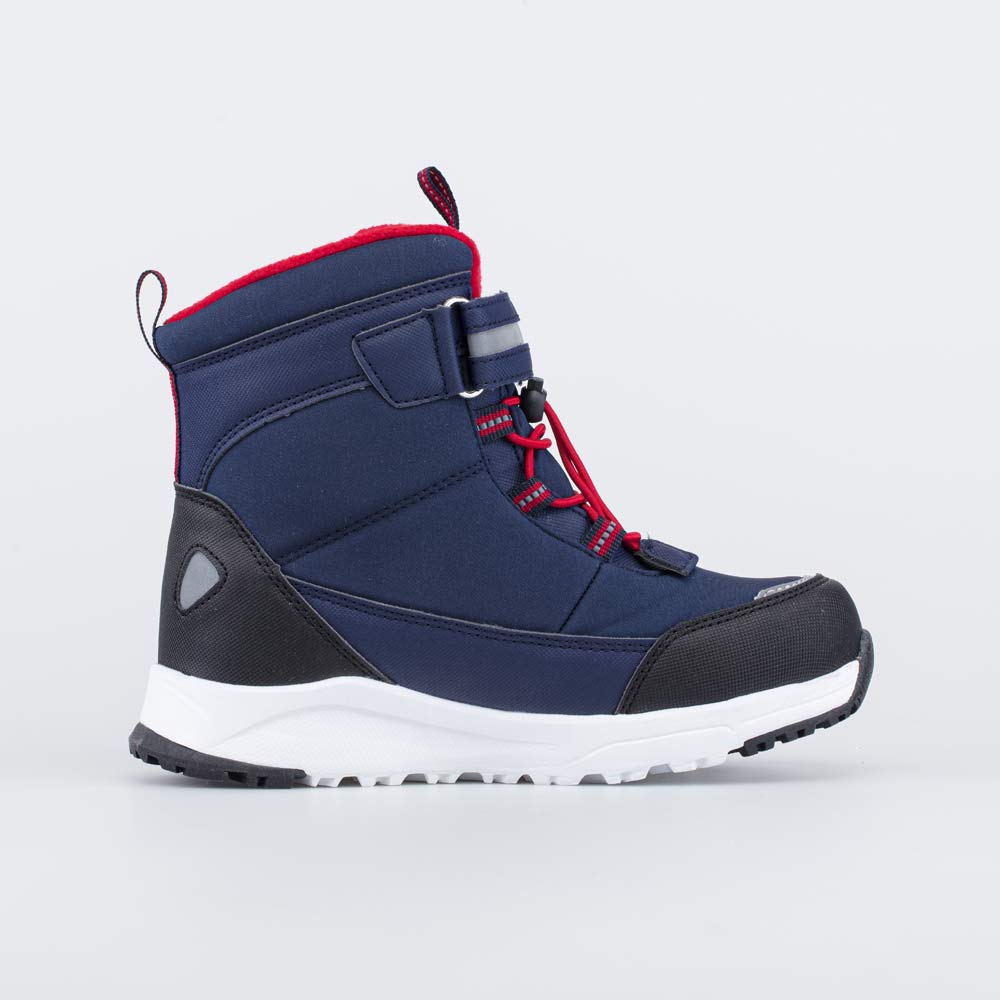 Мембранные ботинки для мальчика с SoftShell сине-красного цвета Верхний слой из материала SoftShell - защита от дождя и ветра. Средний слой - мембрана. Благодаря микроскопическим порам, она дышит, но не пропускает внутрь влагу. Подкладка - мех, на 30% состоящий из натуральной овечьей шерсти. Он согревает и оказывает массажный эффект. По всему периметру ботинка - защитные накладки, которые продлевают срок службы обуви. Шнурки-резинки позволяют отрегулировать обувь по подъему, а липучки-велькро - быстро обуваться и разуваться. Подошва выполнена из легкого материала ЭВА с накладками их термоэластопласта - для повышения устойчивости. Модель анатомически правильная: имеет небольшой каблучок/танкетку, в меру жёсткий задник и круглый носок. Стелька из натуральной шерсти приформовывается к своду стопы, таким образом создавая индивидуальную анатомическую форму внутреннего пространства в обуви, подходящую только вашему ребенку. Это положительно влияет на правильное развитие стоп и всего опорно-двигательного аппарата.