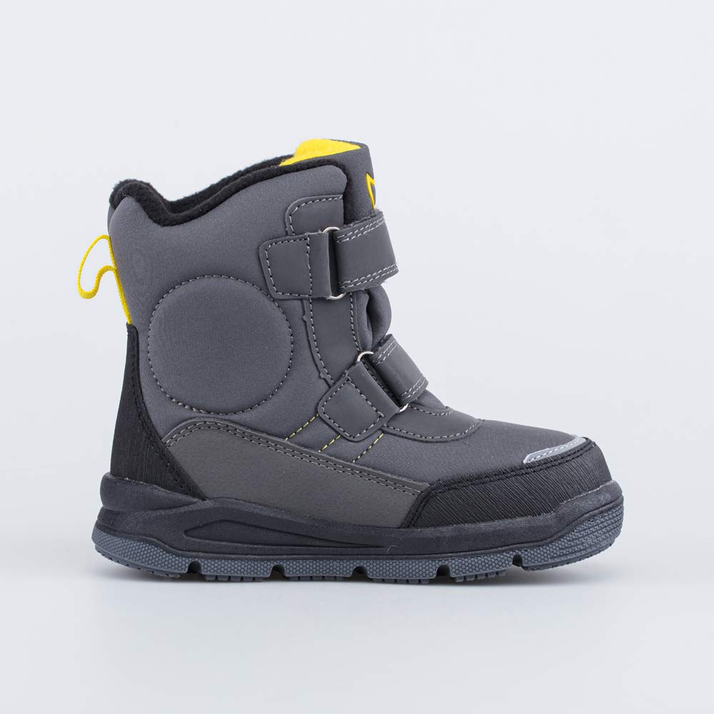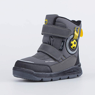 Мембранные ботинки для мальчика с SoftShell серого цвета Верхний слой из материала SoftShell - защита от дождя и ветра. Средний слой - мембрана. Благодаря микроскопическим порам, она дышит, но не пропускает внутрь влагу. Подкладка - мех, на 30% состоящий из натуральной овечьей шерсти. Он согревает и оказывает массажный эффект. На носочной и пяточной части - защитные накладки, которые продлевают срок службы обуви. Липучки-велькро позволяют отрегулировать обувь по подъему, а также быстро обуваться и разуваться. Подошва из ТПР (термопластичной резины) - гибкая, амортизирующая и устойчивая на скользких поверхностях. Модель анатомически правильная: имеет небольшой каблучок/танкетку, в меру жёсткий задник и круглый носок. Стелька из натуральной шерсти приформовывается к своду стопы, таким образом создавая индивидуальную анатомическую форму внутреннего пространства в обуви, подходящую только вашему ребенку. Это положительно влияет на правильное развитие стоп и всего опорно-двигательного аппарата.