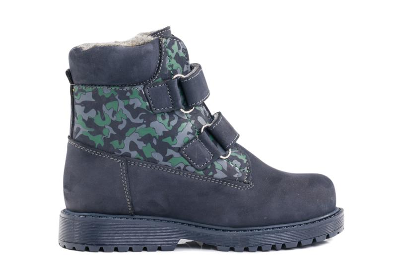 Теплые ботиночки на зиму. Классическая форма и стильный милитари принт отлично дополнят зимний гардероб юного модника. Материал верха роскошный натуральный нубук по своей структуре похожий на замшу. На ноге модель фиксируется с помощью 2-ух липучек, что придаёт максимальную раскрываемость и идеально подходит для ножек с высоким подъёмом. Клеевая подошва с небольшим каблуком.
