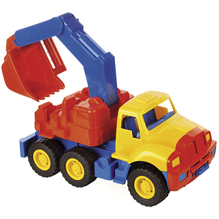 Экскаватор — незаменимая техника на любой стройке. Она оснащена широким ковшом с удобной ручкой для копания песка и мелких камушков. Такая игрушка подойдёт для развлечений дома и на улице.