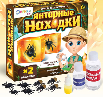 Игрушка опыт Эврики «Янтарные находки» (2 насекомых. Эпоксидная смола/пластик/универсальная)