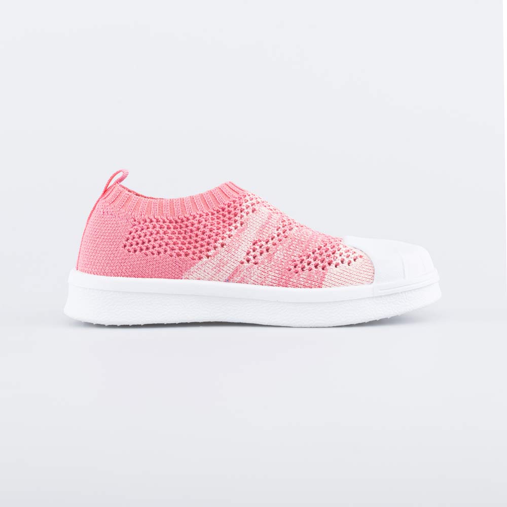 Кеды для девочки из дышащего текстиля. Верх обуви выполнен из вязанного текстиля на 95% состоящего из хлопка, что обеспечивает высокую воздухопроницаемость. Сквозная перфорация и стелька из 100% хлопка создают ощущение комфорта и позволют стопе \'дышать\'. Модель фиксируется на ноге при помощи текстильной резинки. Носочная часть модели защищена накладкой, что обеспечивает износостойкость и долговечность обуви. Подошва выполнена из ЭВА (этиленвинилацетата) - эластичного, амортизирующего и легкого материала. Модель анатомически правильная: во внутреннем пространстве есть небольшая приподнятость пятки по отношению к носку, которая не заметна внешне, подсводник (супинатор), в меру жёсткий задник и круглый носок. Это положительно влияет на правильное развитие стоп и всего опорно-двигательного аппарата.