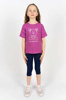 Комплект для девочки выполнен из экологичного хлопка. Ткань легкая, приятная к телу, хорошо пропускает воздух и обеспечит комфорт ребенку во время летних прогулок или носки дома. Футболка прямого силуэта с спущенным рукавом. Горловина круглая, обработана воротником из кулирки. Низ изделия и рукава обработан швом вподгибку. На полочке принт фольгирование. Бриджи для девочки прилегающего силуэта. Пояс цельнокроенный, с эластичной тесьмой внутри, закрепленной в шов. Низ бридж обработан швом в подгибку.