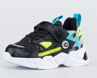 Кроссовки для мальчика с верхом из комбинации высококачественной искусственной кожи и текстильного материала с яркими декоративными вставками. -Все ответственные детали верха: носочная часть, элементы крепления и часть задника из высококачественной искусственной кожи комбинированы менее ответственными деталями из текстильных материалов. - Застёжка - \'велькро\' и шнуровка позволяют отрегулировать обувь по полноте и правильно зафиксировать ее на стопе. - Мягкий манжет создает комфорт при ходьбе и предотвращает натирание ножки ребенка. -Подкладка и стелька из текстиля обеспечивает ногам комфорт и уют. - Материал подошвы очень лёгкий и пружинистый. -Ударная нагрузка: Кроссовки оснащены мигающими лампочками с яркими светодиодами. Лампочки включаются датчиком, реагирующим на ударные нагрузки, возникающие при ходьбе. Модные отделки придают обуви стильный современный вид.Они подходят для комфортного использования, как в спортзале, так и на улице.