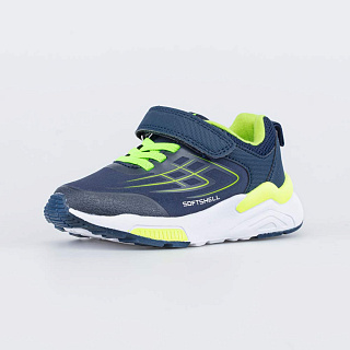 Кроссовки для мальчика с верхом из материала SoftShell. Верхний слой из материала SoftShell - защита от непредсказуемых погодных условий и комфортный микроклимат внутри. Внешний слой отталкивает влагу, обладает эластичностью и повышенной прочностью. Внутренний слой — сохраняет тепло и позволяет ноге «дышать». Текстильная подкладка, на 80% состоящая из хлопка, а также стелька из 100% натуральной кожи, позволяют ноге \'дышать\'. Носочная часть защищена накладками из полиуретана, которые продлевают долговечность изделия. Мягкий манжет предотвращает натирание во время носки. Шнуровка дает возможность отрегулировать обувь по подъему, а липучки-велькро - быстро обуваться и разуваться. Модель интересна сочетанием контрастных цветов и имеет двухцветную массивную подошву. Подошва выполнена из ЭВА (этиленвинилацетата) - эластичного, амортизирующего и легкого материала, дополненного ТЭП (термоэластопластом) - гибким и износостойким. Модель анатомически правильная: имеет небольшую приподнятость задней части по отношению к носочной и круглый носок. Формованная стелька поддерживает стопу в правильном положении. Это положительно влияет на развитие опорно-двигательного аппарата.