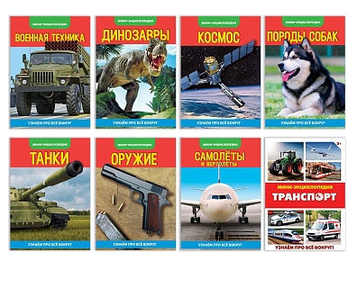Мини-энциклопедии «Для мальчиков» — это большой набор познавательных книг с яркими красочными иллюстрациями! Ребёнок найдёт в них информацию о самолётах, вертолётах, танках, оружии, динозаврах, космосе, военной технике, породах собак и транспорте.
