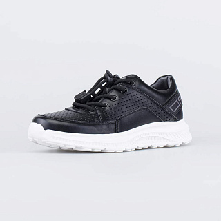 Облегченные кроссовки для мальчика черного цвета. Верх выполнен из искусственной кожи. Подкладка на 70% состоит из натуральной кожи, дополненной гипоаллергенным синтетическим материалом. Дополнительную вентиляцию обеспечивает перфорация. Мягкий манжет предотвращает натирания. Резинка с фиксатором позволяет быстро обуваться и разуваться. Подошва из ЭВА (этиленвинилацетата) - гибкая, амортизирующая и очень легкая. Модель анатомически правильная: имеет небольшую приподнятость пяточной части по отношению к носочной, подсводник (супинатор), в меру жёсткий задник и круглый носок. Такая научно-обоснованная конструкция положительно влияет на правильное развитие стоп и всего опорно-двигательного аппарата.