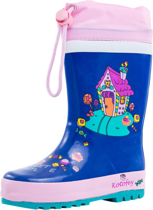 Резиновые сапожки для девочки Котофей 366169-11 (синий/резина)