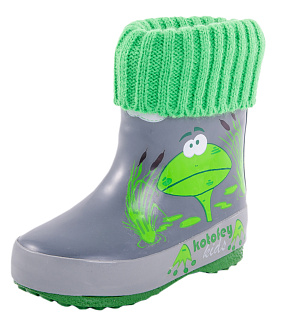 Резиновые сапожки для мальчика Котофей 166033-41 (серый+зеленый/резина)