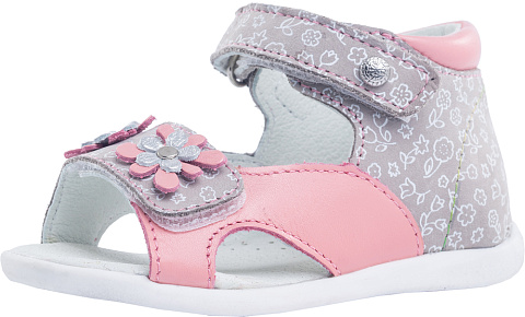 Нежные и нарядные летние туфли изготовлены специально для юной модницы! Модель выполнена из натуральной кожи, что обеспечит полный комфорт ножке ребенка. Закрытая пяточная часть помогает правильно фиксировать стопу ребенка. На ноге модель крепится при помощи ремней с застежкой велькро, что позволяет легко и быстро обувать и снимать туфельки. Модель украшена красивой фурнитурой в виде цветочков!