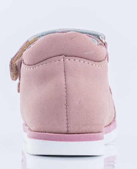 Туфли летние выполнены полностью из натуральной кожи приглушенного розового цвета. Два ремня с велькро(липучкой) обеспечивают идеальную посадку по ноге. Мягкий манжет создает комфорт при ходьбе и предотвращает натирание ножки ребенка. Подошва выполнена из прозрачного термоэластопласта с блёстками – легкого, прочного материала, обладающего отличным амортизирующим свойством. Подошва имеет наплыв в носочной части, что увеличит долговечность сандалий и надолго сохранит приятный внешний вид.